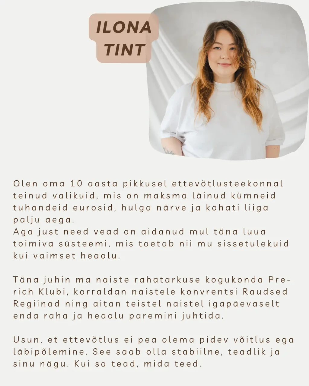 Esimeses osas me räägime lahti enda 3 süsteemi. Teises osas valime välja kaks naisettevõtjat, kelle hetke murekoha või takistuse võtame live’is lahti ja aitame selguse ning konkreetse tegevusplaanini.
