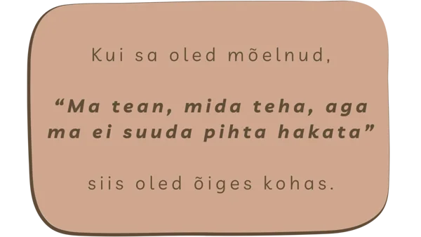 - sa oled ilma jäänud edasiviivatest võimalustest, sest sa kaalud iga otsust liiga kaua ja kardad eksida